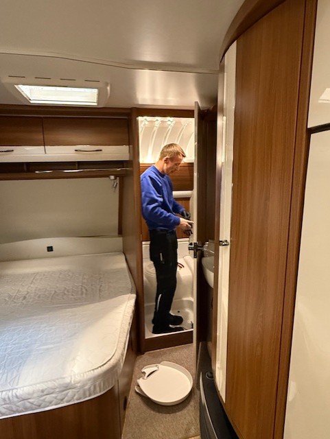 Testen er en tilstandsundersøgelse af campingvognen. Den bliver gennemset for fejl og mangler. Samtidig bliver der lavet en fugttest og en gastest samt en kuliltetest.
